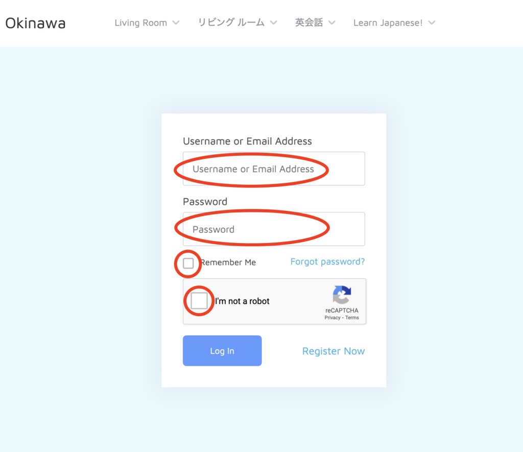 3.ユーザー名とパスワードを入力。そしてLogin ボタンをクリック。